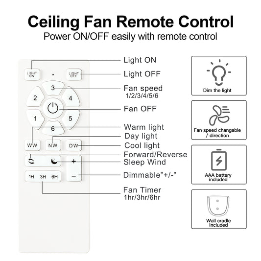 76 Inch Indoor Ceiling Fan With Dimmable 3 Color Led Light 8 Solid Wood Blades Remote Control Reversible DC Motor Wood