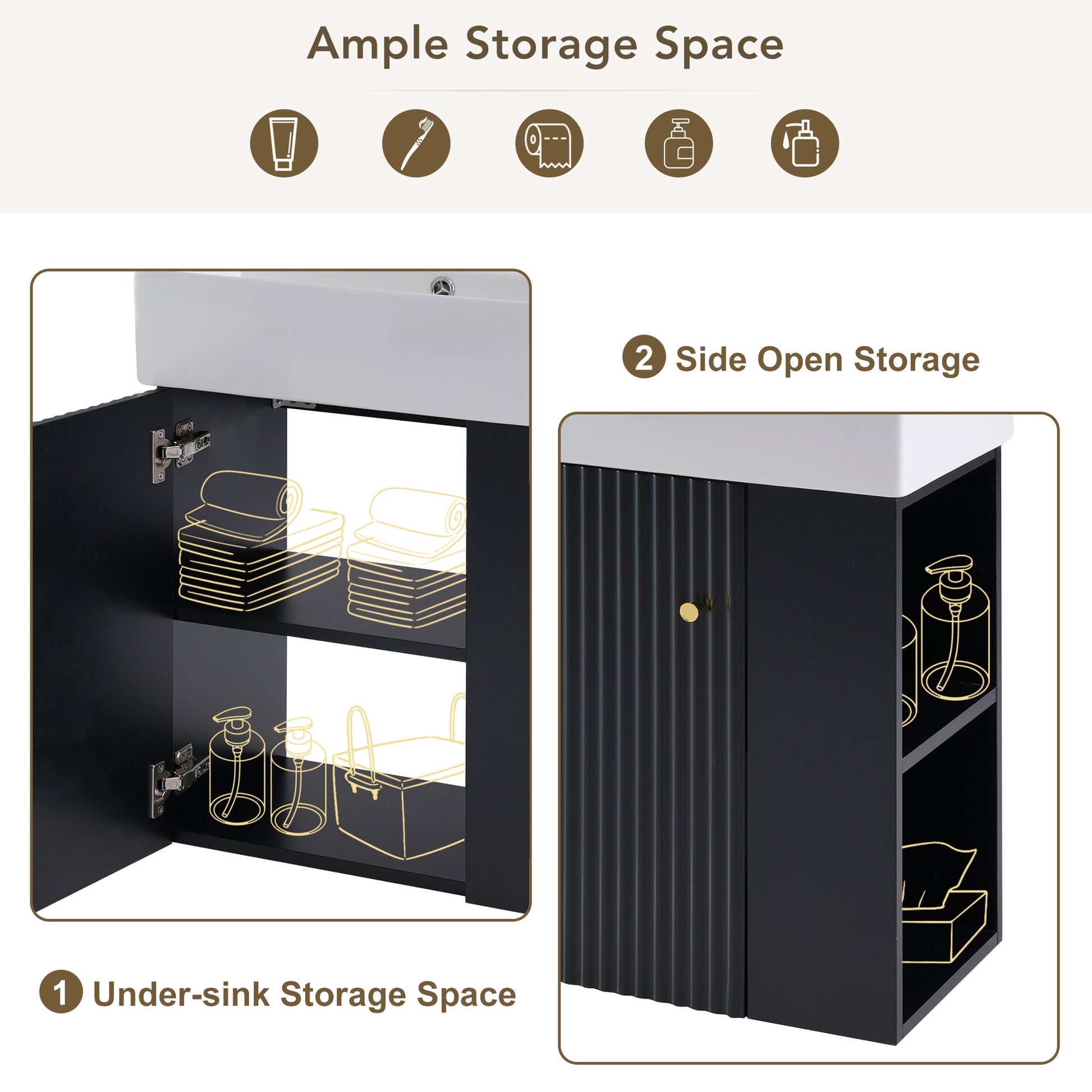 21.6 inch Modern Floating Bathroom Vanity with Ceramic Basin - Perfect for Small Bathrooms, Right side storage