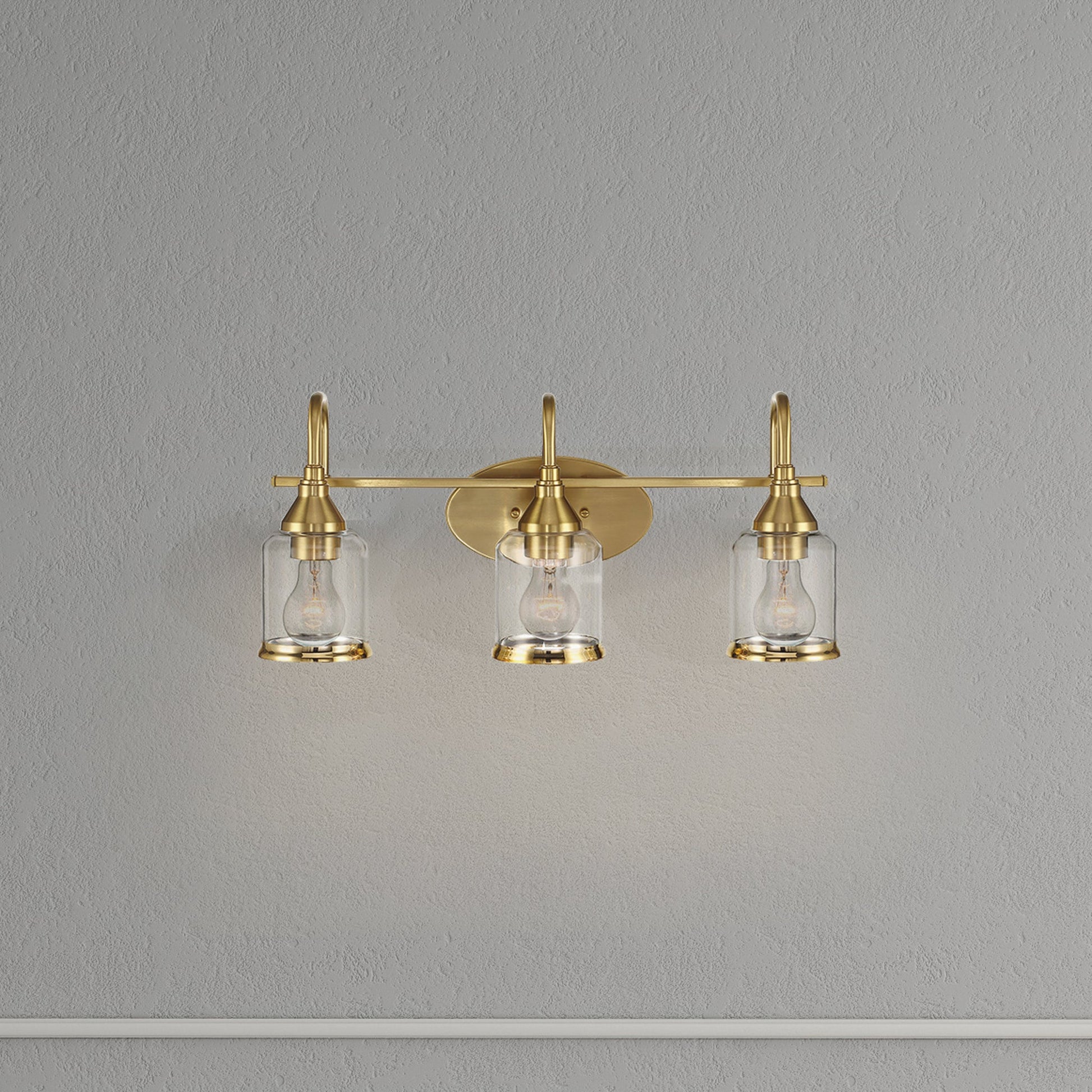 22 in. 3-Light Brushed Gold Vanity Light with Clear Glass Shades