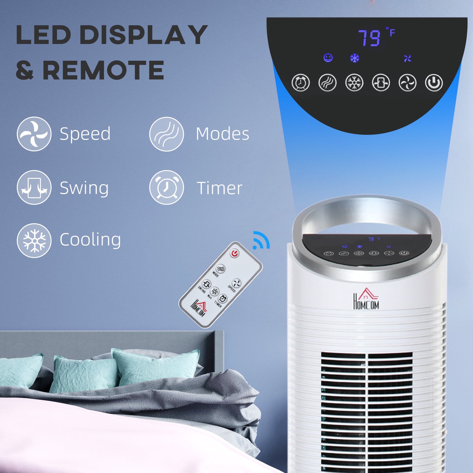 - Led Screen and Remote: The LED panel displays temperature, speed, modes, swing, timer, and cooling. Control the portable air cooler using the buttons or with a remote so you can set it without having to get up.