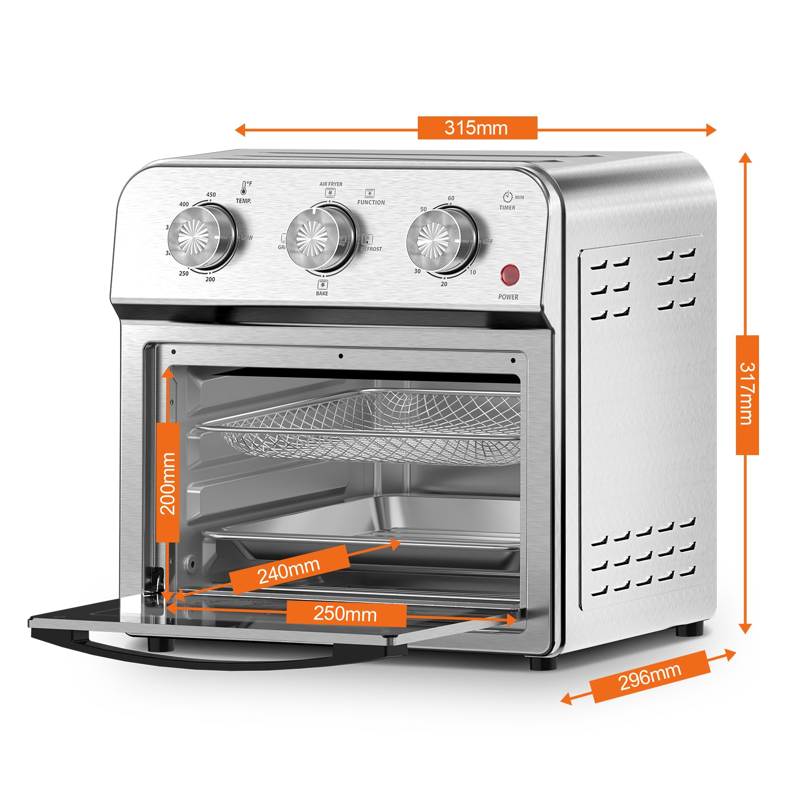 - 4.【Larger capacity】 Air Fryer Toaster Oven is large enough to toast 6 slices of bread, air fry 20 chicken wings, bake a 13”pizza, or roast a chicken,It’s versatile, efficient, and compact.