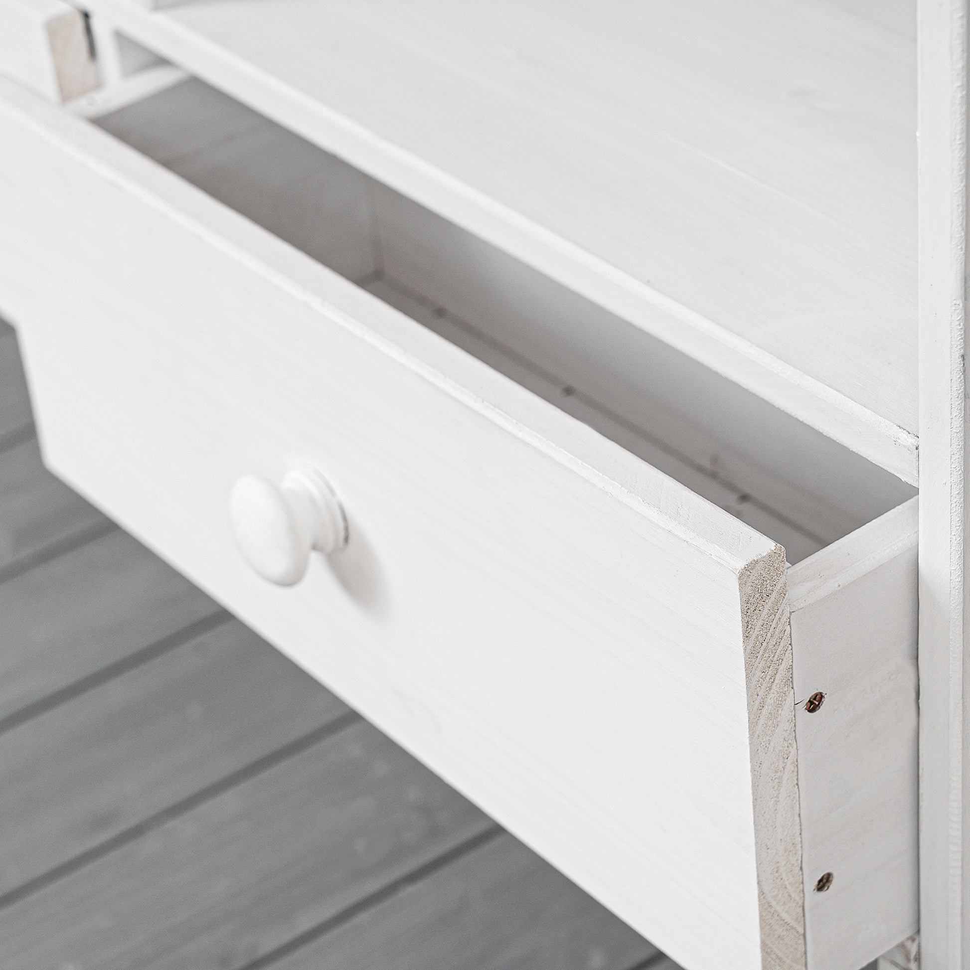 Smart Storage: Open shelves, 5 smaller, and 4 larger drawers offer easy access and secure storage, with an adjustable lower shelf for added versatility.