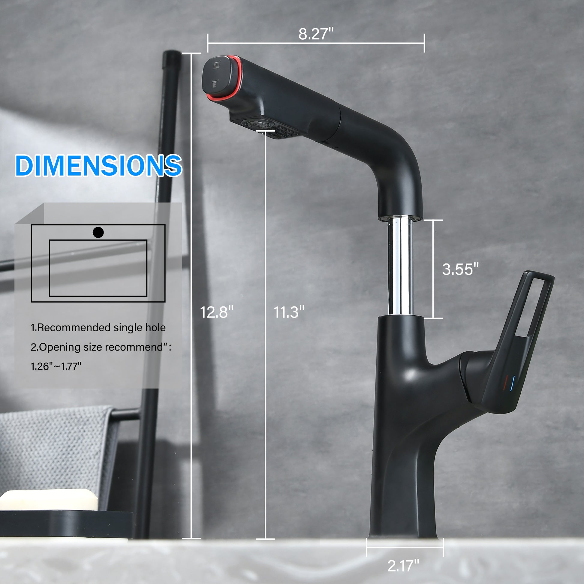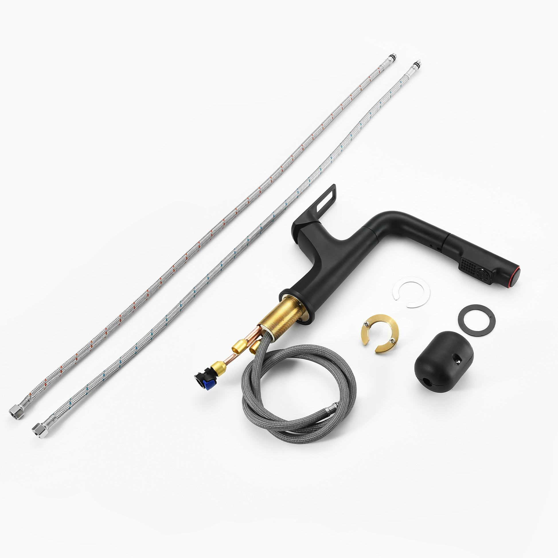 【Full-Scene Coverage】: 23.6 in retractable hose with 3.55 in lift range adapts to vessel sinks/deep kitchen basins, featuring tool-free installation and smooth movement.