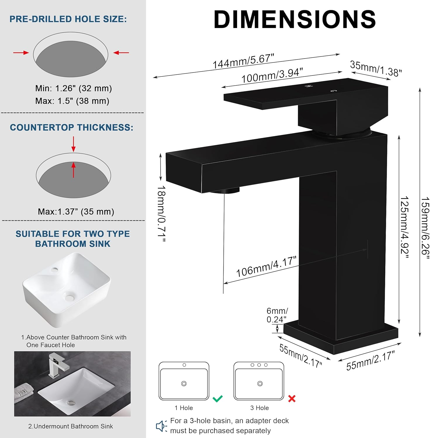 Elegant & Modern Style: matte black surface treatment bathroom faucet, unique square design, makes your bathroom more elegant and modern, looks more luxury